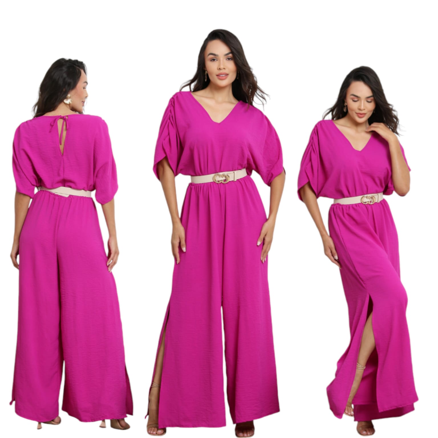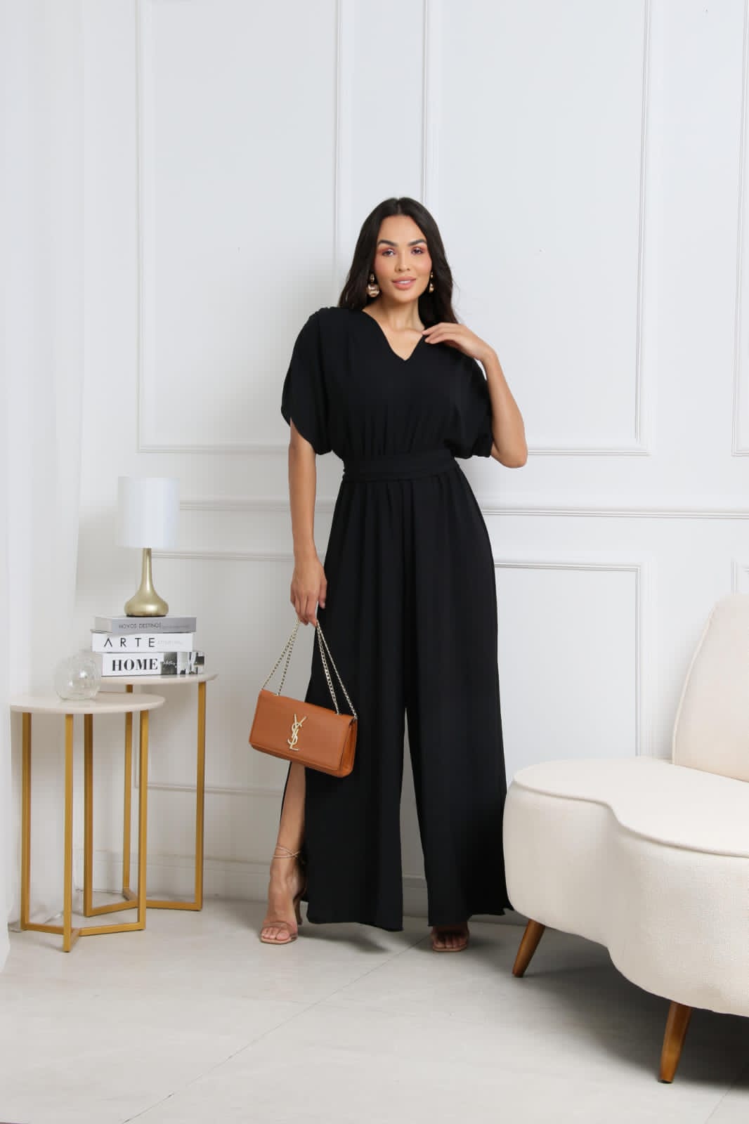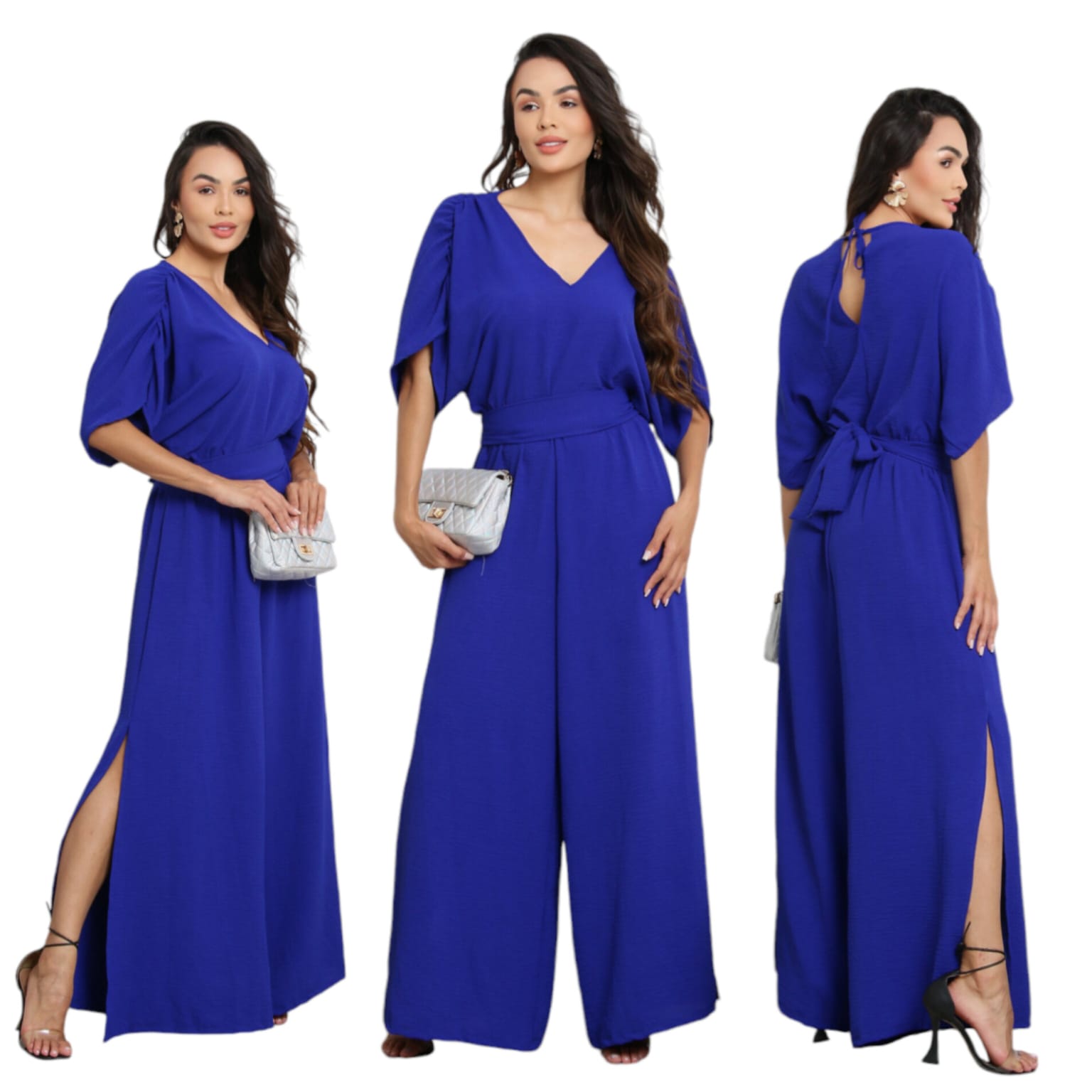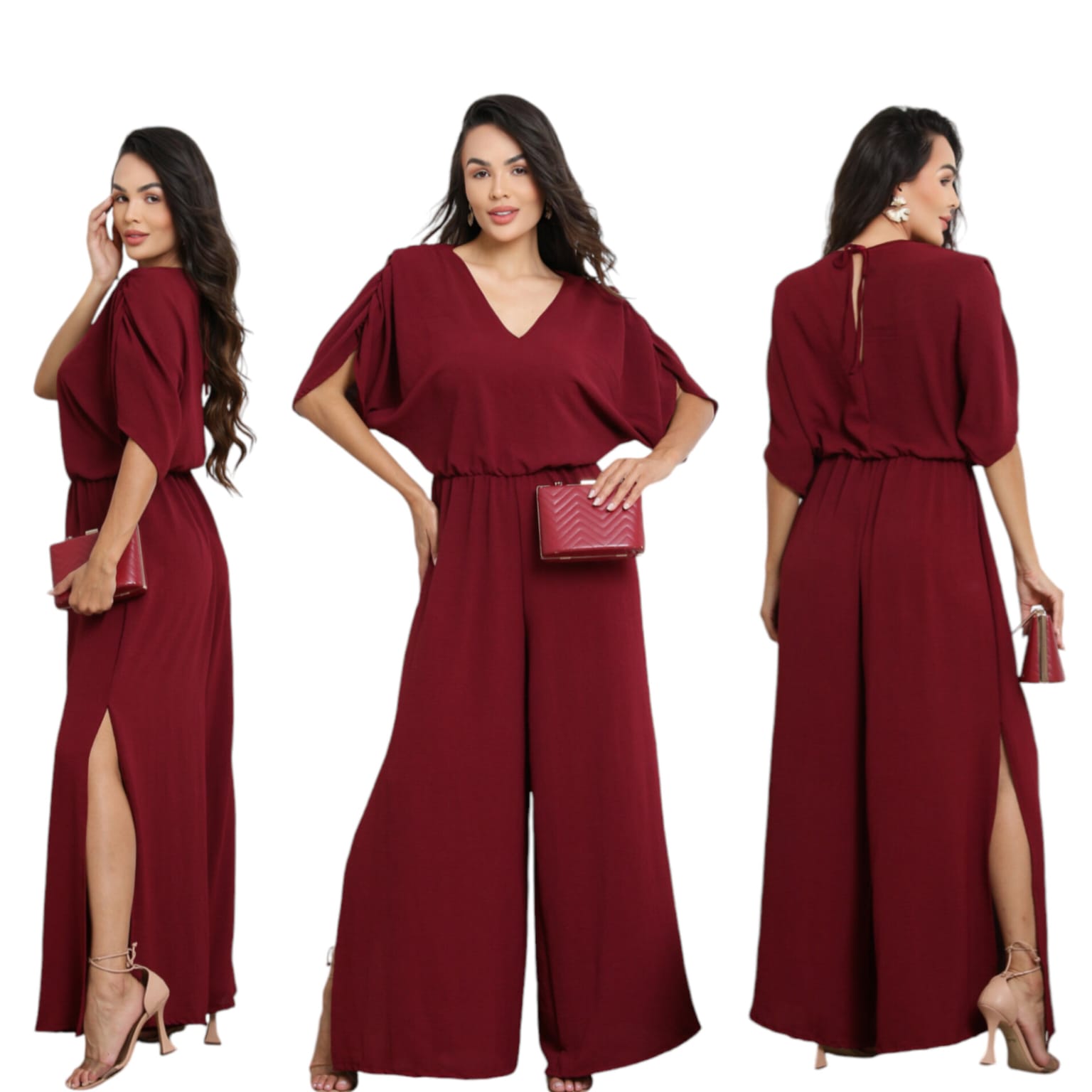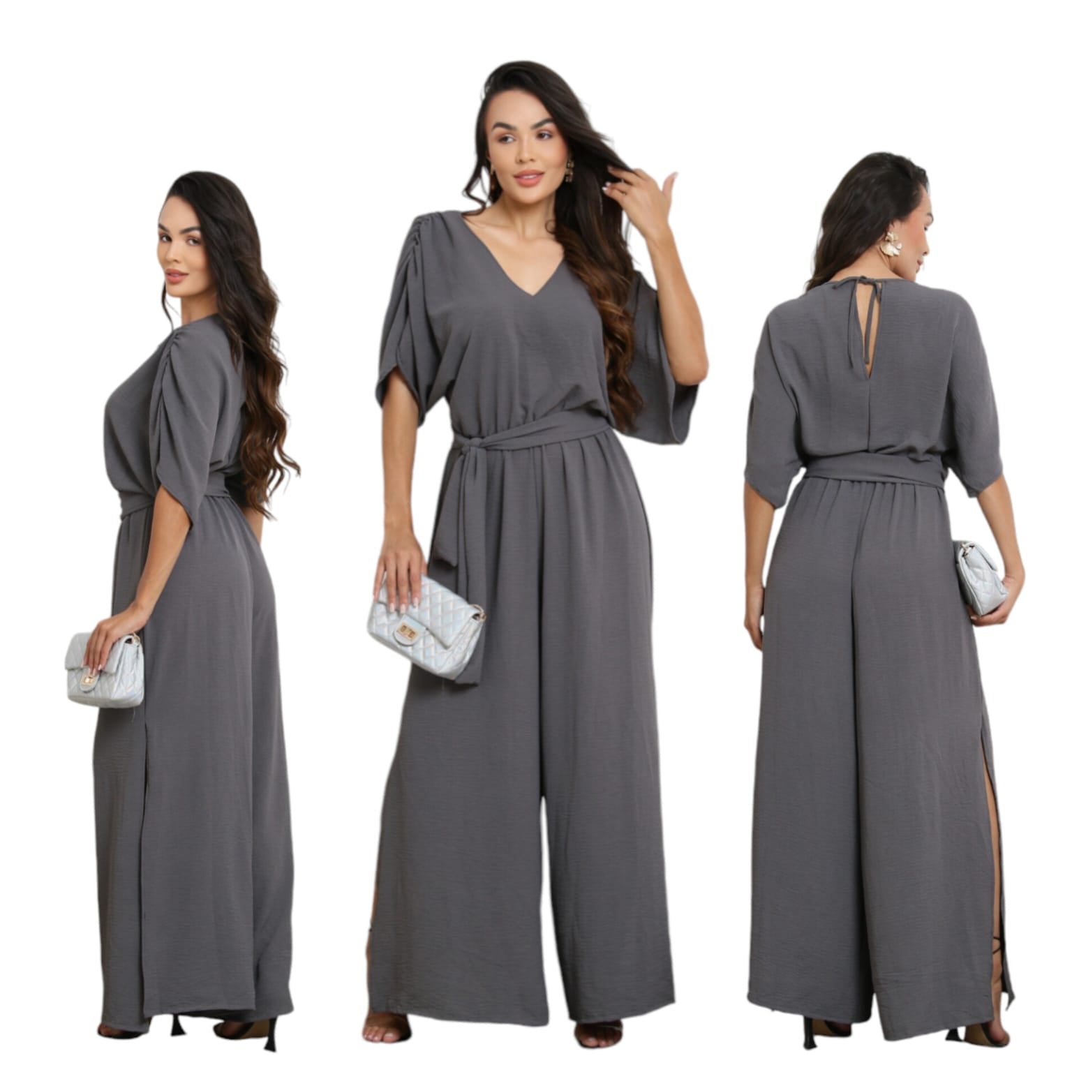 Macacão Pantalona Fendas Elegante Social e Casual Soltinho