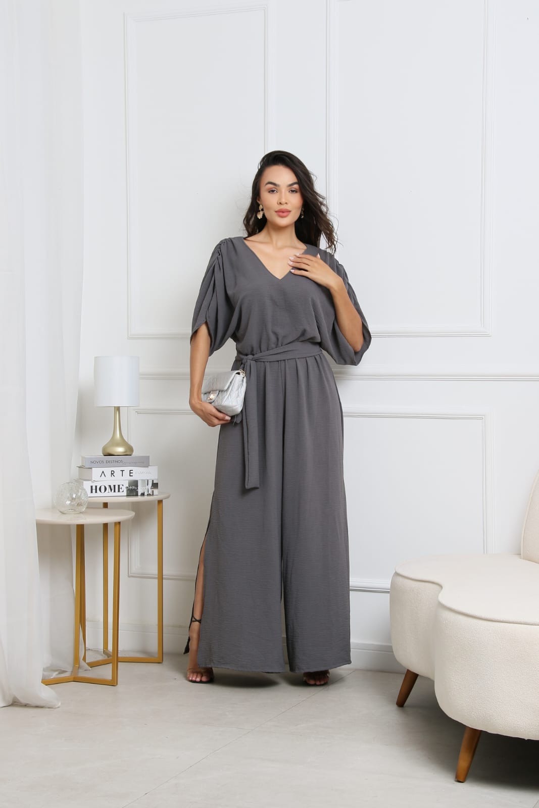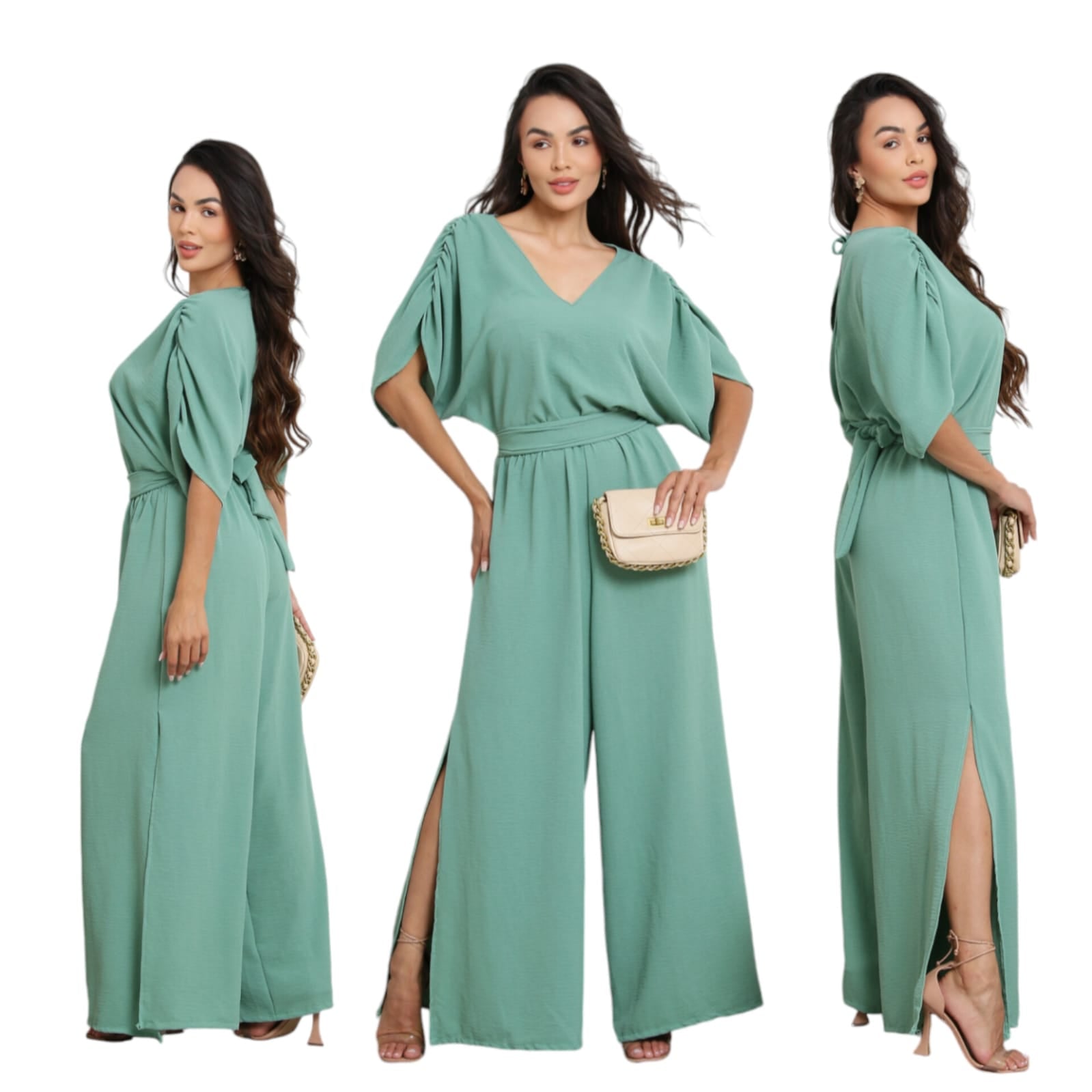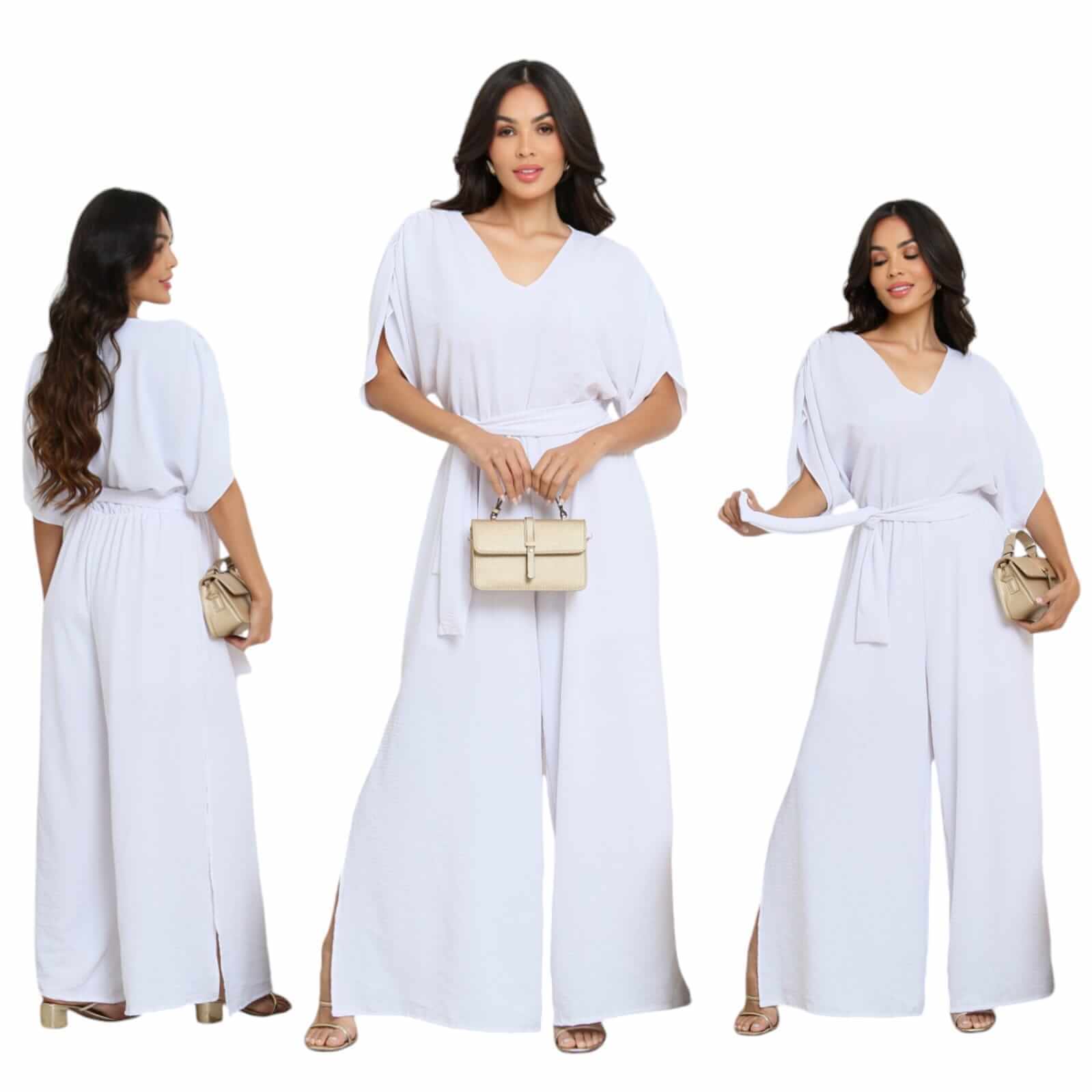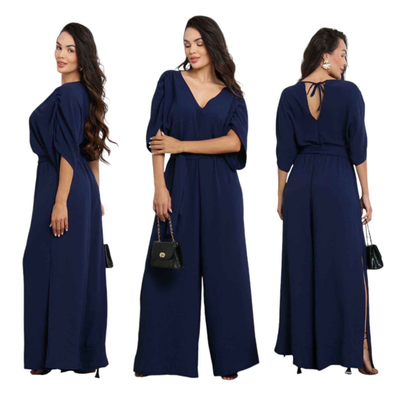 Macacão Pantalona Fendas Elegante Social e Casual Soltinho