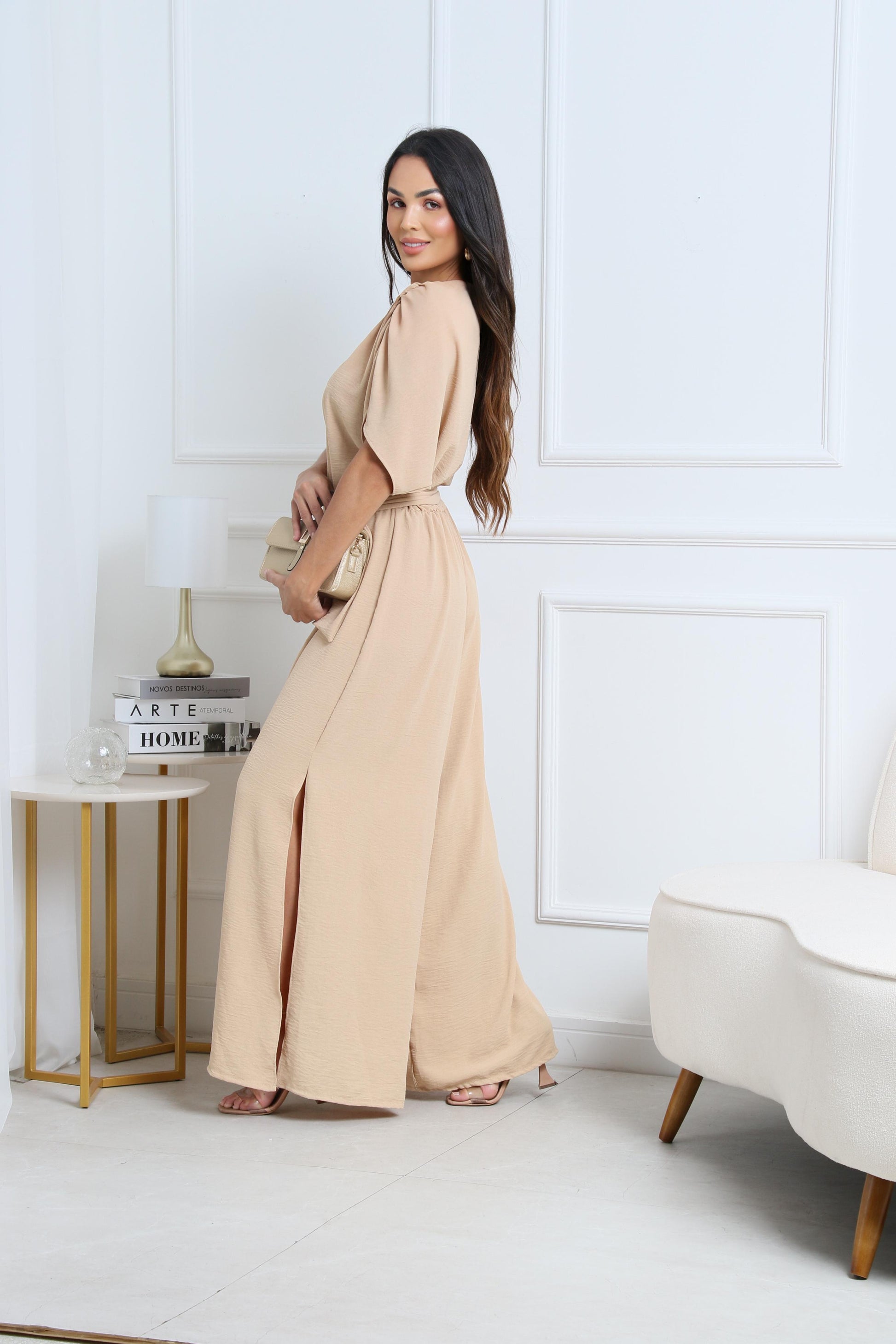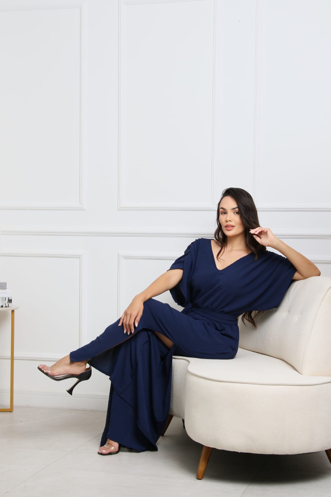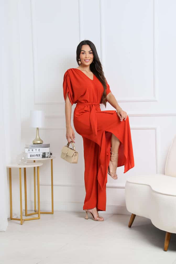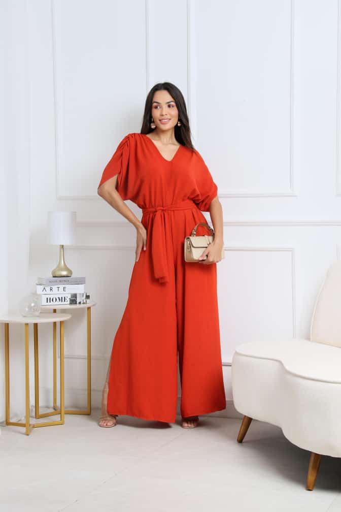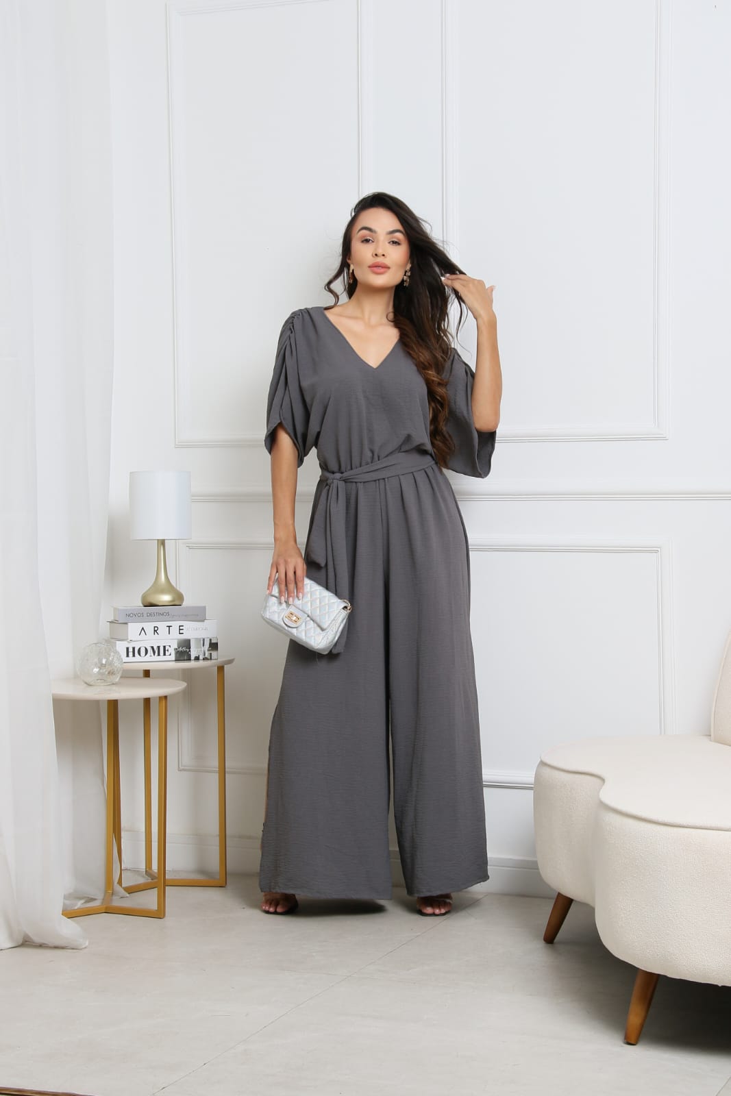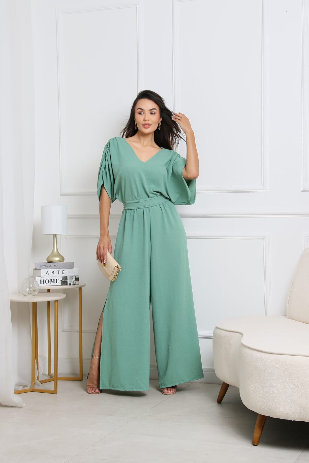 Macacão Pantalona Fendas Elegante Social e Casual Soltinho