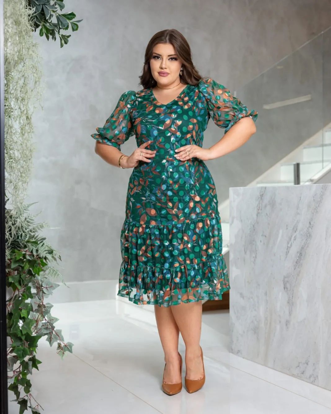 Vestido Plus Size Midi Feminino Manga 3 / 4